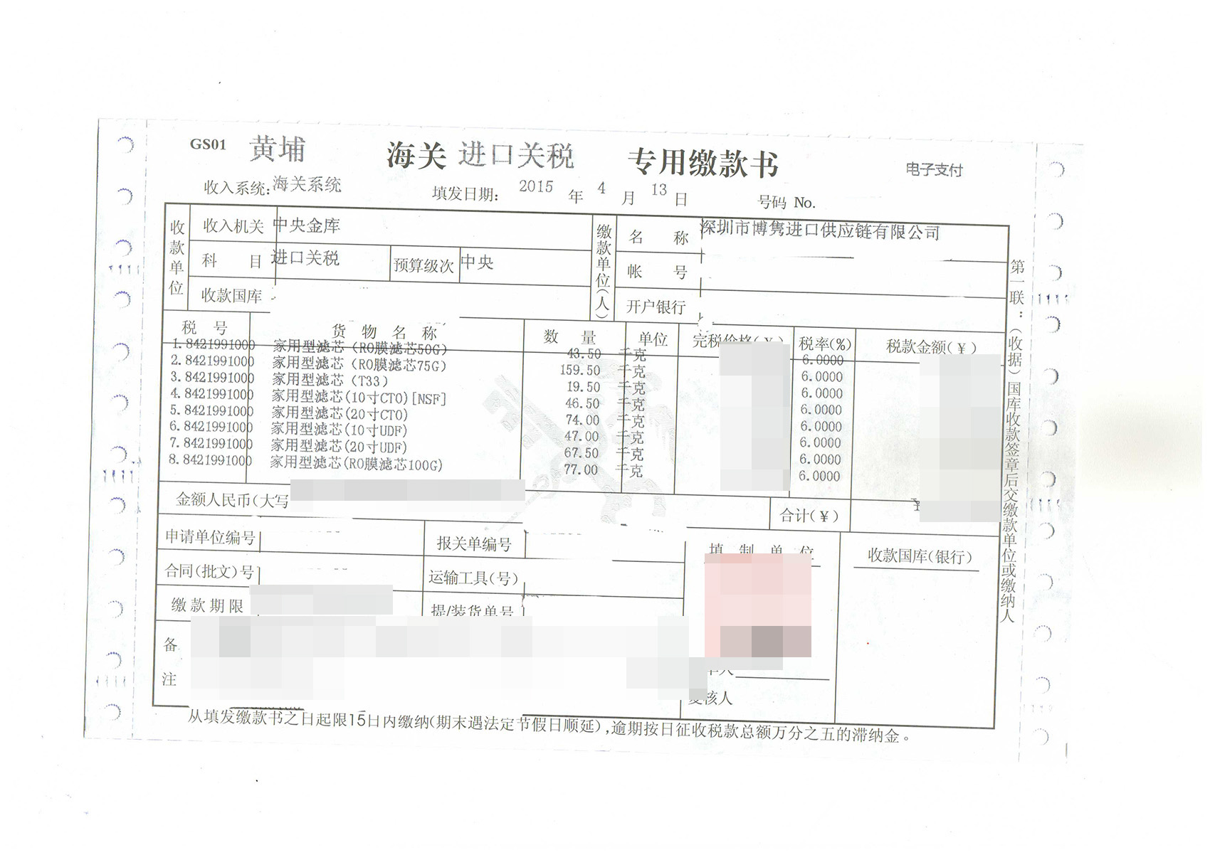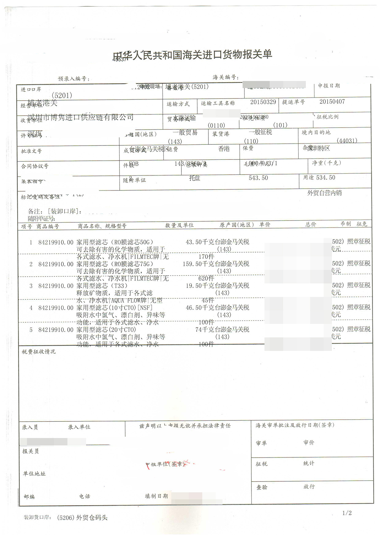 - 濾芯進(jìn)口報關(guān)案例