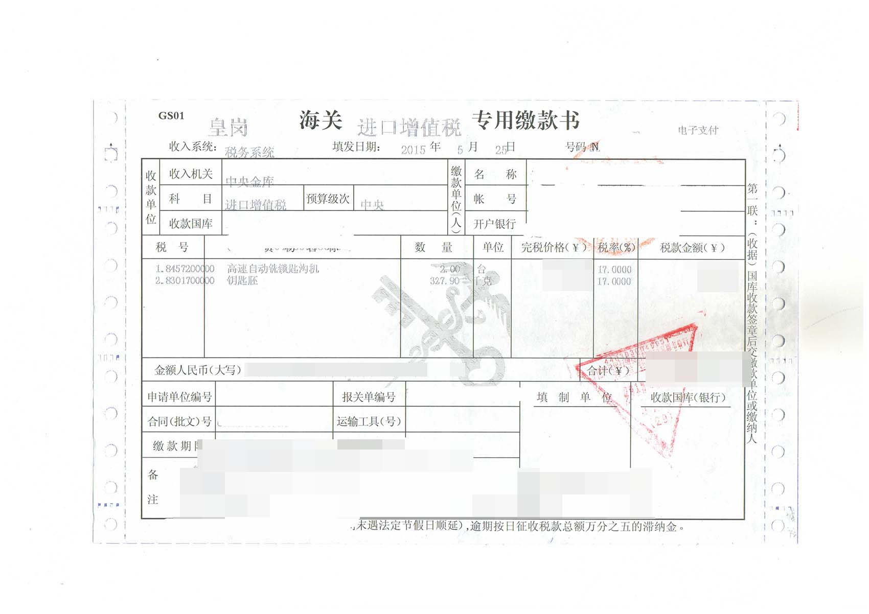- 高速自動銑鎖匙溝機進口報關手續及案例【進口知識】