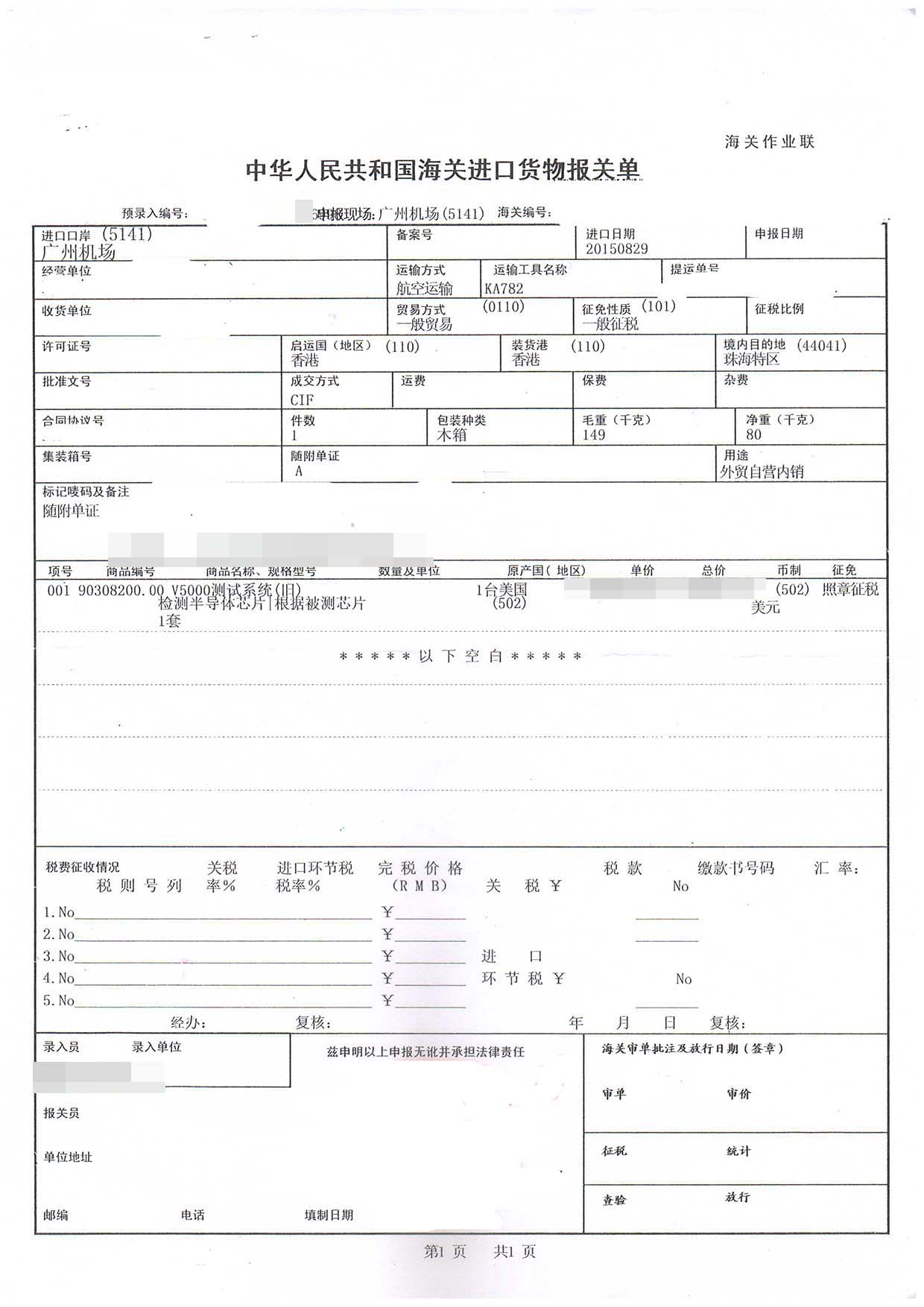 四、測試機(舊)進口報關案例展示