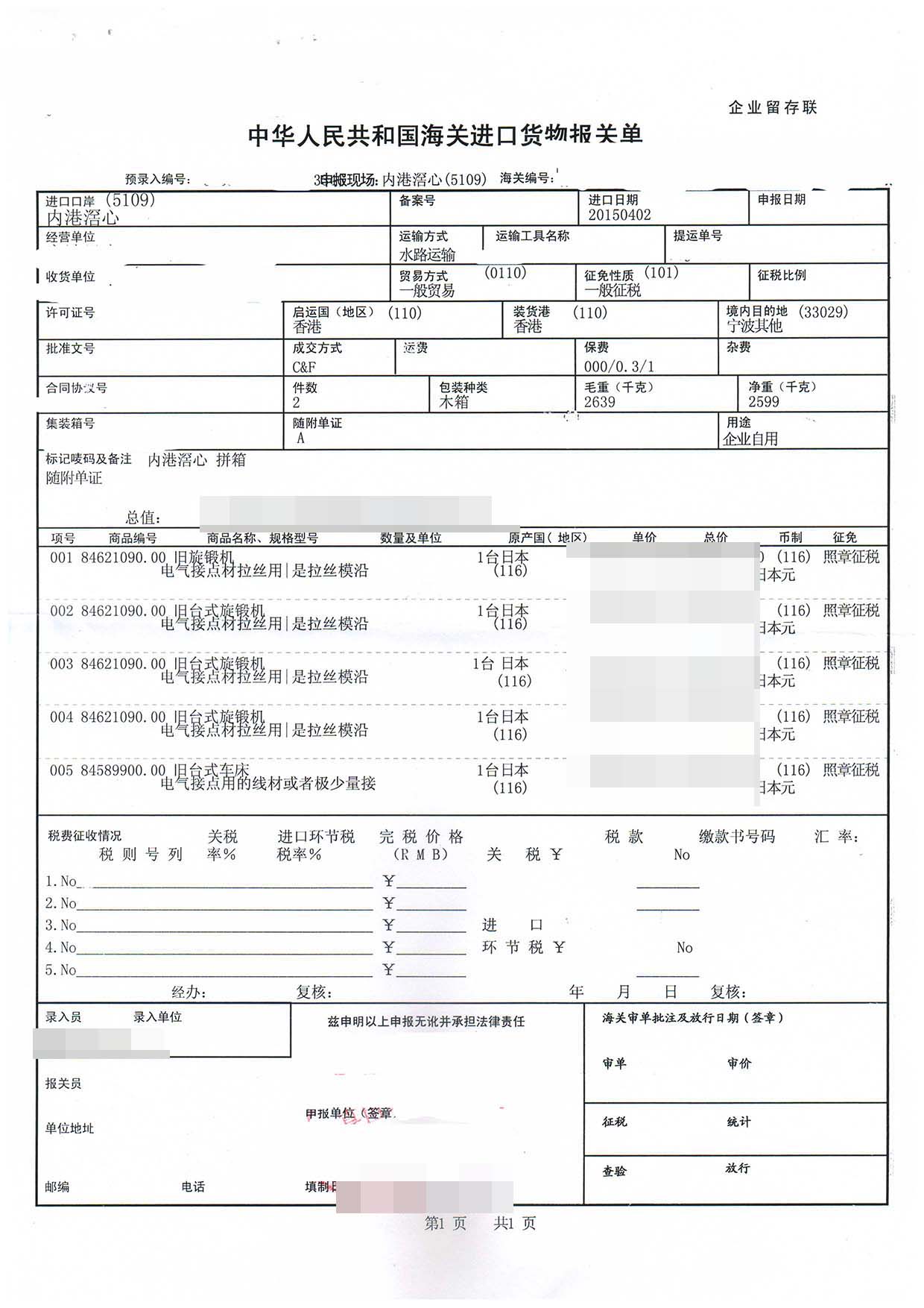 一、舊旋鍛機進口報關(guān)手續(xù)資料
