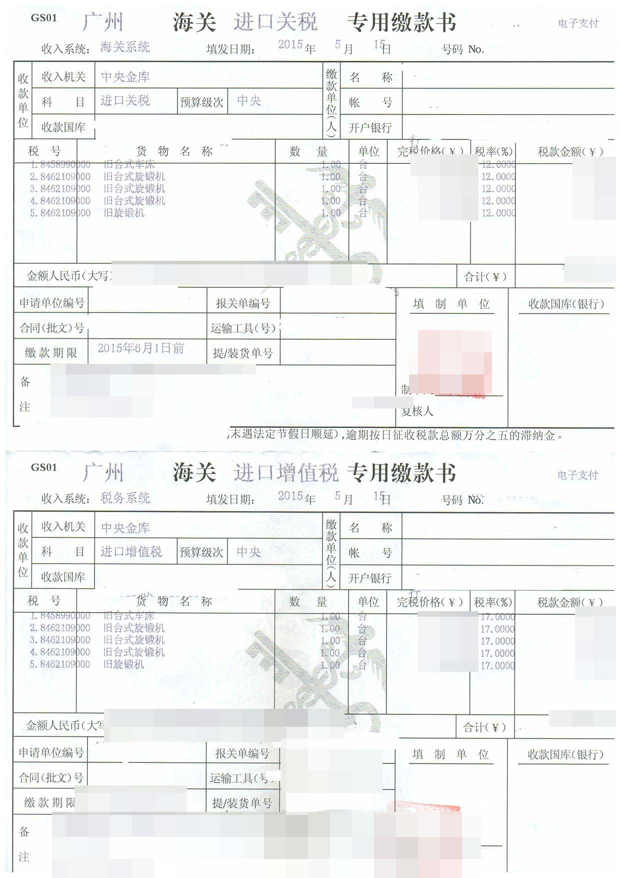 四、舊旋鍛機進口報關(guān)案例展示