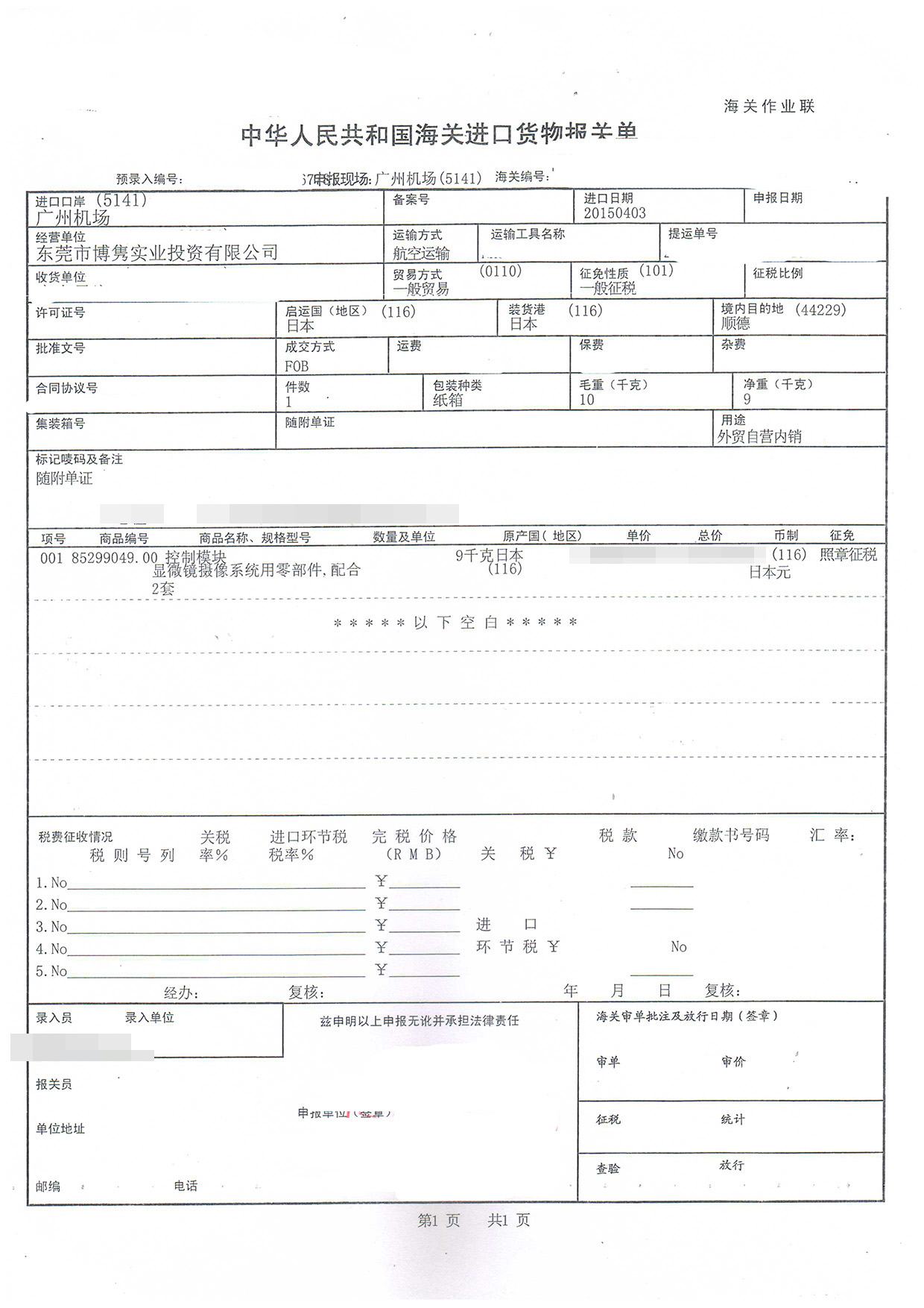 三、控制模塊進口報關案例展示