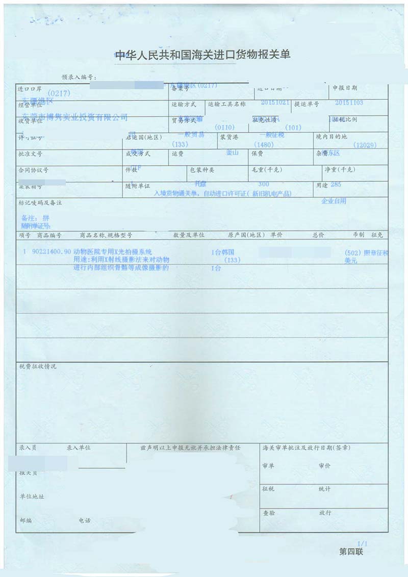 操作貨物:動物醫(yī)院專用X光拍攝系統(tǒng)