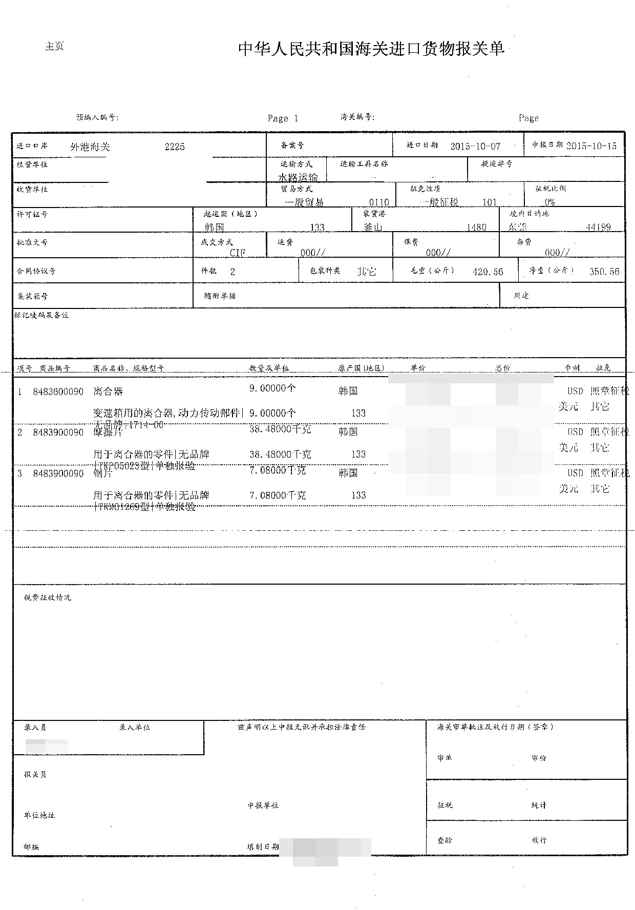 三、離合器進口報關案例展示
