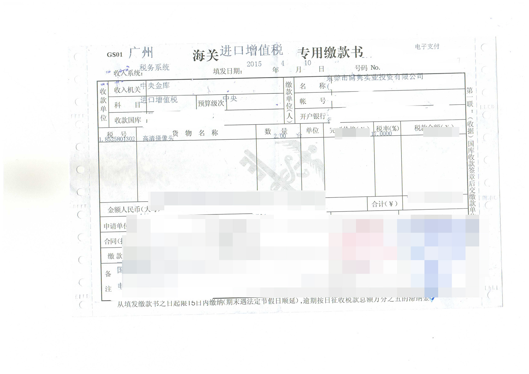 三、高清攝像頭進口報關案例展示