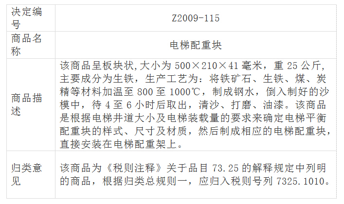 不論是卷?yè)P(yáng)機(jī)驅(qū)動(dòng)的強(qiáng)制驅(qū)動(dòng)電梯,還是曳引機(jī)驅(qū)動(dòng)的曳引驅(qū)動(dòng)電梯,一般都會(huì)配有平衡(配重)塊,用以降低主電機(jī)的牽引力和功率,節(jié)省費(fèi)用和能量。但不應(yīng)想當(dāng)然地將平衡塊按電梯零件歸入品目84.31,見(jiàn)73.25品目注釋及歸類決定Z2009-115: