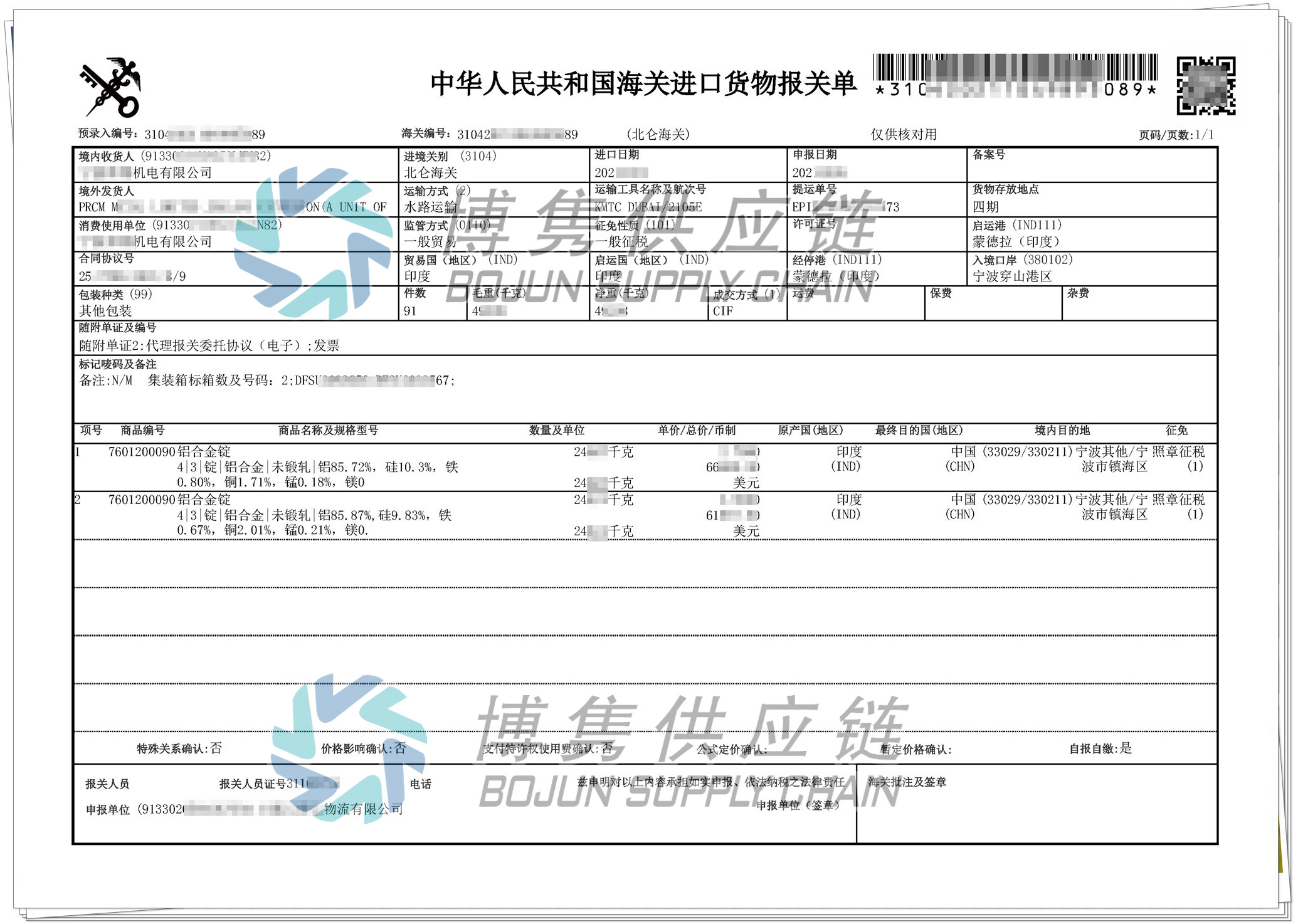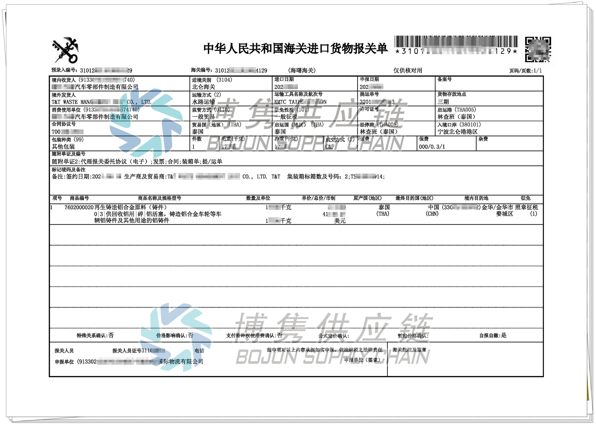 1、博雋供應鏈對再生金屬(再生銅、鋁、鋁錠)有著豐富的進口經驗,代理過多家企業進口。2、所有資料模板博雋皆可提供,減少企業整理資料的麻煩,省事省心,提高效率。